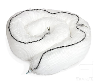 Absorbs oil and oil-based fluids including lubricants and fuels. Does not absorb water. Absorbency per snake approx. 51 litres. The white color makes it visible and easy to see how much it has absorbed. The snakes can be easily connected with the supplied carabiner. Packaging contains 4 snakes 20cm x 3 m