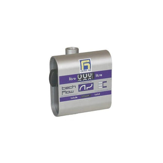 Dial type meter with reset dial. The meter can be mounted in several positions. The meter can be calibrated depending on the viscosity of the liquid. A scale showing liters for measurement (3 digits), 17 mm high, and a 6-digit one for total, 4 mm high. Max +50°C.