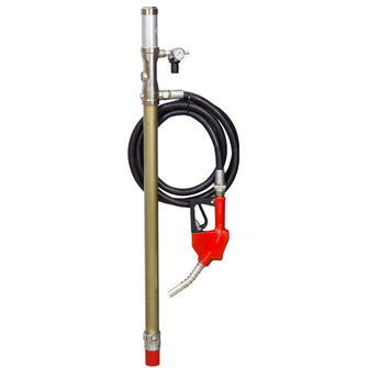 Complete compressed air-driven 1:1 pumping equipment for bottling diesel. With automatic handle and 3 meter 3/4" outlet hose. Regulator with compressed air coupling (male). Barrel adapter 2".