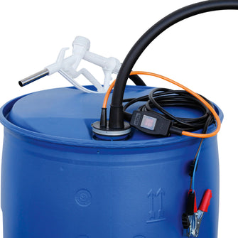 Dränkbar pump för diesel 12 Volt med automathandtag. Kabelklämmor med 4 m kabel och on/off-knapp. 4 meter utloppsslang med automathandtag. Finns med flera anpassningar. Flöde 25 liter/min.