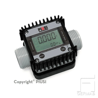 Electronic oval wheel gauge with LCD display, which can be rotated in four different positions, made of polyamide with oval wheels made of polypropylene intended for Urea/Adblue, water and washer fluid etc. The meter is calibratable. The meter can be mounted on a pipe or at a gun valve. Powered by 2 x 1.5 volt AAA batteries. Current and accumulated volume is displayed, resettable. Working temperature -10°C to 60°C. Connection threads ext. G1" incl. a sleeve IG 1”.
