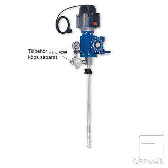 Elektrisk fettpump av hög kvalité för helfat. Elektriska fettpumpar möjliggör enklare användning och installationer då elektricitet oftast är mer tillgängligt än tryckluft. Går t ex att driva med elverk vilket ger stor flexibilitet. Germ AB erbjuder ett brett sortiment av elektriska fettpumpar för de flesta applikationer. Våra elektriska fettpumpar finns i fyra olika modeller samt för tre olika fat, 15-25 kg, 50 kg och helfat. Kontakta oss gärna så berättar vi mer.