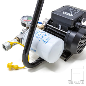 When you want to ensure that the oil is clean and that you have a filter while pumping. Filter indicator on filter housing. Quick coupling Female/Male. The pump should not be run without connected outlet and inlet hoses. Bypass 3 bar.