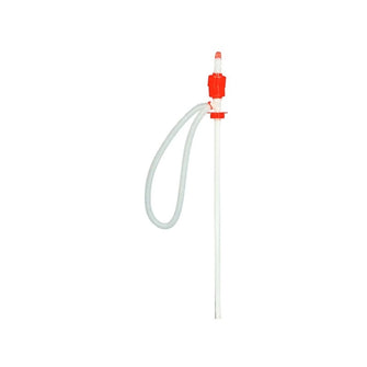 Simple pump for low viscosity liquids. Non-aggressive chemicals. Pump up liquid by squeezing the upper part of the pump, after liquid comes, push the pump arm down to the bottom of the pump housing and let it drain. Outlet hose included. Barrel screw ext. G2" included.