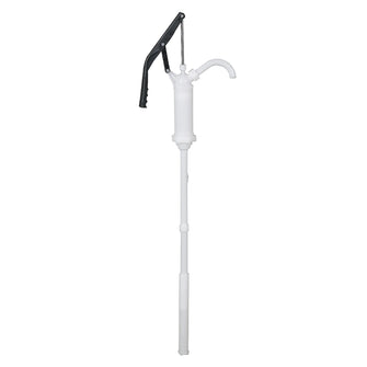 Pump intended for most types of chemicals. Telescopic suction tube intended for containers from a min. approx. 360 mm to a max. 920 mm height. Pump body of PVDF (teflon®), seals of PTFE (teflon®). Piston rod of acid-resistant steel (AISI 316). Outlet pipe Ø ext. 19 mm. For can assembly, an adapter is required, e.g. NW50-EUR.