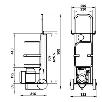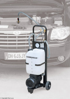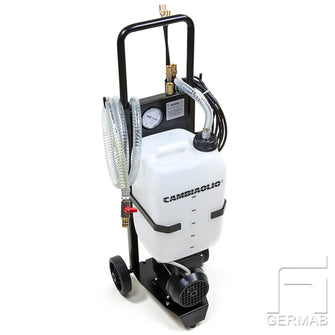 Consisting of trolley, electric pump, control panel, removable 12 l container. Motor 0.5 kw 230V 1-phase with overload protection. The connection coupling for the suction pipes is adapted to the Mercedes oil changer system. Capacity approx. 1.4 litres/min with Ø 6 mm suction probe at an oil temperature of +80°C or approx. 7 min with the same suction probe and an oil temperature of +20°C. 5 m electric cable and 2 m suction hose included.