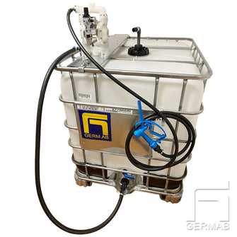 Pumping equipment for IBC conatines. Intended for liquids compatible with polypropylene, hytrel and nitrile. Examples: OIL, WASTE OIL, WATER, WASHER FLUID, GLYCOL. With suction tube 1100mm and barrel screw connection in plastic. Regulator to regulate inlet and outlet pressure and also the flow. Quick coupling for air connection and suction hose