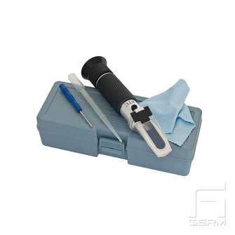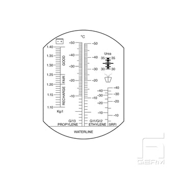 Optical instrument for checking AdBlue, Def, Coolant and washer fluid freezing point as well as the battery's state of charge. Shows the freezing point of both AdBlue, ethylene glycol, propylene glycol and washer fluid with three different scales showing in °C, as well as a scale for the specific gravity of the acid. The antifreeze and the specific weight of the acid are marked with a sharp light/dark line on the scale. The check of the specific gravity or freezing point takes only a few moments regardless of the temperature of the liquid, only a few drops are needed to make the test. The MT-415 comes with a custom box and suction pipette. Can also be called adbluetester, glycol tester.