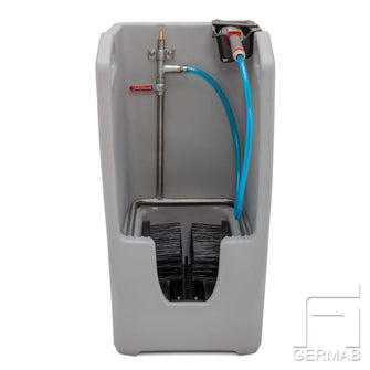 Shoe/boot wash suitable for agriculture, vets, industry or other contaminated areas. Outlet in the tub for easy emptying.
