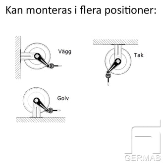 Öppet utförande med fjäderretur, för montage på vägg, tak eller golv.