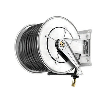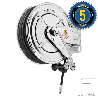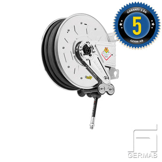 Slangupprullare för tryckluft & vatten helt i rostfritt.