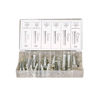 Assortment of locking pins in a practical plastic box of a total of 15. Hairpin sprint included.