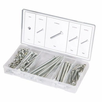 Assortment in 8.8 steel in practical plastic box of a total of 100 pcs.