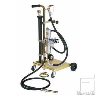 Equipment with air-driven pump intended primarily for petrol and diesel, but can of course be used for other liquids. The equipment consists of a 30-60kg barrel trailer complete with pump with vacuum manometer. 2 m suction/pressure hose and suction pipe Ø 8 & 12 mm. Connecting pipe for hose Ø 6, 8.10 mm included. Ground cable included. The equipment complies with the directives according to Atex 94/9.