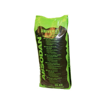ABSODAN grovkornig granulat för inom och utomhusbruk. Väl lämpat på fasta ytor såsom verkstadsgolv t.ex. Det strös ut vid akut spill. Korn storlek 1-3 mm. Optimal friktion vid fullt mättat absorptionsmedel. ABSODAN absorberingsmedel är en naturlig granulat av mycket hög kvalitet som framställs genom en kalcineringsprocessen samt en omfattande mekanisk bearbetning utan tillsatsämnen. Absodan är enkelt och säkert att använda, Absodan kan användas för att suga upp spill av tex olja, vatten, syror, organiska lösningsmedel och kemikalier mm. Absodan släpper inte ut uppsugen vätska utan den hålls kvar inne i den porösa strukturen. Absodan bibehåller friktionen då kalcineringsprocessen gör att produkten förblir hård även vid full mättnad.( Flussyra undantaget). Absodan är snabbverkande och har en mycket bra uppsugningsförmåga.