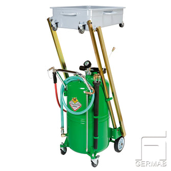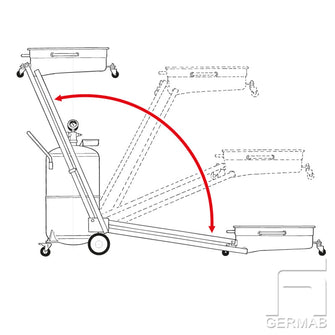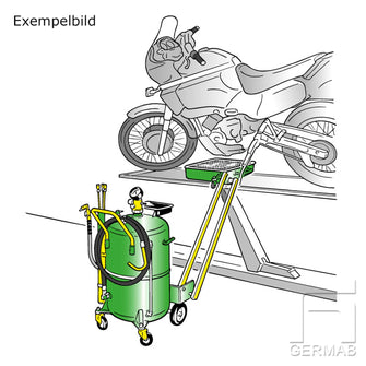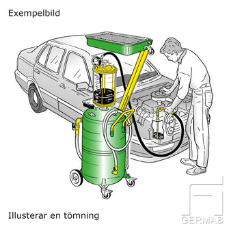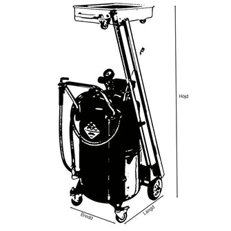 Consisting of a tank and a waste oil bowl that can be used for changing the oil of especially trucks and heavier vehicles. An arm system means that the low waste oil bowl can be used in several positions. The volume of the waste oil bowl is approx. 50 litres. The equipment should be used at oil temperatures of approx. +60° to +80°C. The equipment is emptied using compressed air (max. 0.5 bar). Tank 115 liters. 2 straight straws Ø 6 and 8 mm. 3 flexible straws Ø 6, 7 and 8 mm. The connection coupling for the suction pipes is adapted to the Mercedes oil changer system. Connection for WV, BMW and Citroën included. 2 m suction and drain hose included. For correct vacuuming, the air pressure must be between 6.5-7 bar.