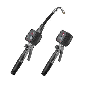 Digital handmätare med 90° slang och automatisk non-drip funktion.
