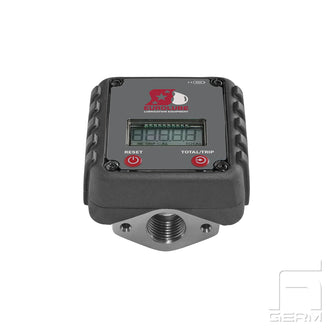 Digitalt mätverk med inv. 1/2" på inlopp och utlopps. Material som vätskan kommer i kontakt med är rostfritt stål. Mätverket är ovala kugghjul. Strömförsörjningen är 2 st AAA alkaliska batterier.
