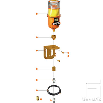 Komplett kit för att montera er Pulsarlube elektromekaniska smörjautomat med 2 punkter. Avsedda för modellerna M / EXPL / BT / MS / MSP / PLC / Mi