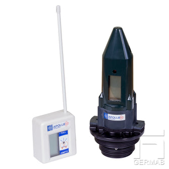 Trådløs nivåsensor med opptil 200 m rekkevidde og enkel montering med 2 skruer på toppen av tanken eller med gjenget adapter. Tankdybden programmeres med bryterne plassert i en fordypning bak displayet. Tankdybde maks. 3 m. En akustisk alarm når tanknivået er lavt (justerbar) .