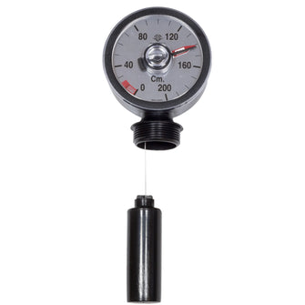 Nivåmåler beregnet for fyringsoljer, smøreoljer, parafin, vann osv. for innendørs eller utendørs installasjoner. Flottørens bevegelse overføres med en linje til måleapparatet. Gradering i cm.