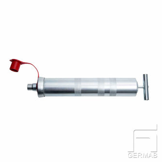 TUBI Påfyllingspumpe Sentralsmøresystem 400 g MLS skruepatron eller vanlig patron. Innretning for fylling av sentrale smøreenheter fra en fettpatron. Enkel håndtering uten å slepe bøtter osv. Fyll med ønsket fettpatron, og bruk stangen til å skyve fettet inn i den sentrale smørebeholderen. Leveres for bruk med MLS skruepatroner og kan enkelt konverteres til bruk med standard DIN1284 fettpatroner. 20 mm sylindrisk forbindelse mellom fylleren og adapteren. Komplett med rett eller 90° adapter som monteres på sentralsmøreenheten. Adapteren er tilgjengelig som M20x1.5 (Beka-Max, etc.) eller M22x1.5 (Lincoln, etc.) for de fleste vanlige enheter.