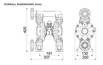 Membranpumpar med en max kapacitet på 170 l/min, tryckförhållande 1:1 för överföring av vätskor, förenligt med materialet i pumparna.