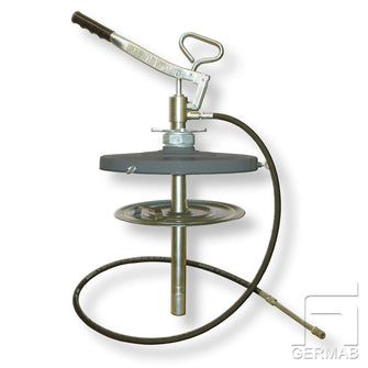 Hånddrevet fettpumpe for smørevedlikehold. Robust modell. Egnet for smørevedlikehold og service innen sektorene, kjøretøy, industri, skip, landbruk og gruveindustrien. Maks trykk 35 MPa. Kapasitet 2gr per slag. Utstyret inkluderer pumpe, tønnelokk, følgeplate, 1,5m slange med hydraulisk kobling.