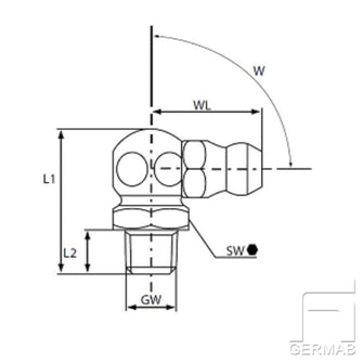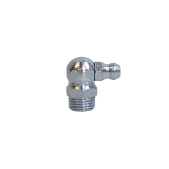90° gradig smörjnippel enligt standard DIN 71412. Stålnippel i förzinkat stål, tillverkad i Tyskland. Håller mycket hög kvalité. Med konisk gänga.