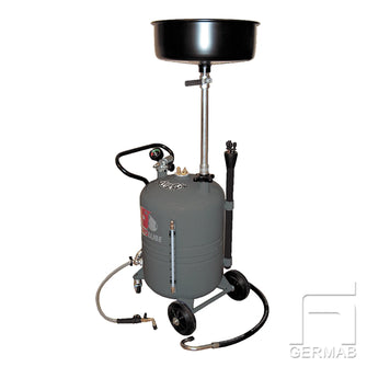 Mobil spilloljeavløp for alle typer oljer. Kan med fordel brukes under heiser eller i smøregroper. Unik stor skål, rom for verktøy mm. på oversiden av tanken, noe som forbedrer arbeidsmiljøet betydelig. Design og ytelse på høyeste nivå. Kan ikke brukes til eksplosive eller etsende væsker. Tømming via trykkluft maks trykk 0,5bar. Inkludert: 70L tank, 20L bolle, 2m avløpsslange, Sikkerhetsventil, Vakuumpumpe, 8 sugeprober.