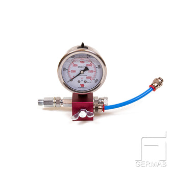 Overtrykksventil med fettretur og trykkmåler. Returledningen bringer overflødig svette tilbake inn i sprøyten for enkel demontering av dysen uten søl. Manometer for avlesning av gjeldende trykkgradering 0-1000 bar. Utstyret er montert på anbefalte smørepistoler. Arbeidstrykk 500 bar. Maks trykk 700 bar. Håndterer fett opp til gjennomføringsklasse NLGI 3. Tilkobling gjengeslange innvendig 1/8".