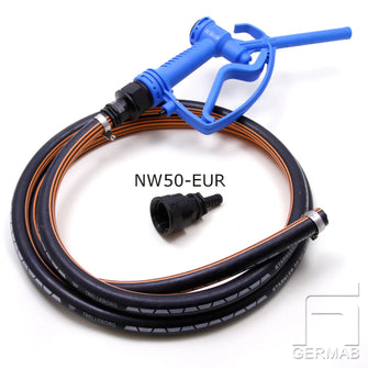 Utløpssett for Urea/AdBlue tilpasset IBC beholder bestående av koblingskobling NW50-EUR (60x6) slange L= 2000 mm og manuelt utløpshåndtak.