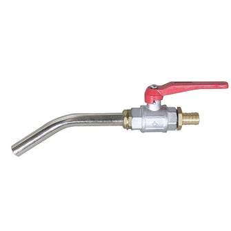 Ventil för olja, glykol, med vinklat utloppsrör, inkl. slangnippel för slang.