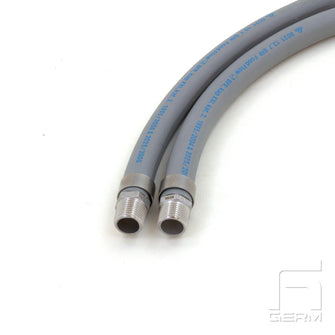 Flexibel livsmedelsslang Grå med monterade kopplingar.