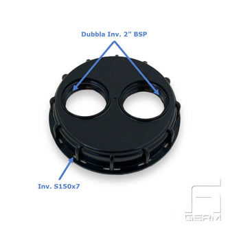 Med inv. 150x7 och inv. G2" X 2 för ev. ansl. av sugrör i IBC container. Avsedd för gänga på toppen av IBC container.