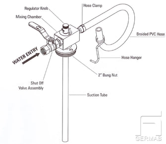 Injektorblandare för blandning av olika vätskor t.ex. avfettning, microemulsioner, glykol, spolarvätska etc. Injektorn ansluts till lokalens vattenledningsnät samtidigt som sugrör ansluts till inblandningsvätskan. Injektorblandaren är försedd med utvändiga gänga G2" för fatanslutning. Utrustningen levereras med 1,0 m sugrör samt 0,6 m utloppsslang. Material som kommer i kontakt med vätskan är aluminium, rostfritt, stål, mässing, acetal, PVC, nitrilgummi NBR.'