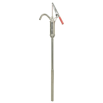 Rostfri pump avsedd för olika typer av kemikalier. Sugrör av teleskoptyp avsedd för behållare från min ca 500 mm till max 980 mm höjd. Pumpkropp av rostfritt stål och tätningar av PTFE. Utloppsröret Ø utv. 19 mm. För dunkmontage krävs en adapter t ex NW50-EUR.