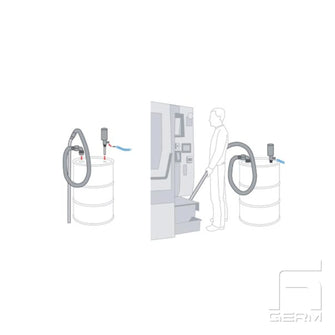 Maskintömmaren är en vätskesug som suger direkt till ett standardfat. Vacuumpumpen monteras i fatets 3/4” hål och sugslangen med tillbehör i 2” hålet. Anslut tryckluft och utrustningen är klar att användas. Suglansen skall vara placerad under vätskeytan för att få ett bra resultat. Sugkapacitet vatten ca 90 liter/min. Ingående lufttryck ca 2-6 bar. Max sughöjd 4 m. Luftförbrukning ca 260 liter/min. Vikt ca 4 kg.