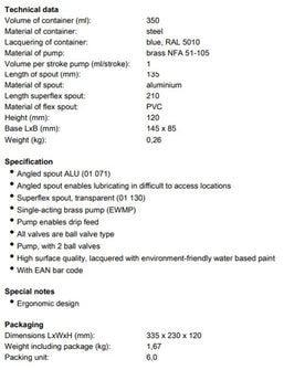 Oljekanna med mässingpump försedd med borste. Behållarvolym 350 ml.
