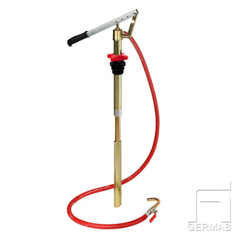 denna pump användbar för de flesta oljor. Eftersom pumpen är dubbelverkande ger den ett jämt flöde. Fatförskruvning och 2 m 1/2” slang med vinklad utloppsventil ingår. Sugrör 38 mm i diameter.