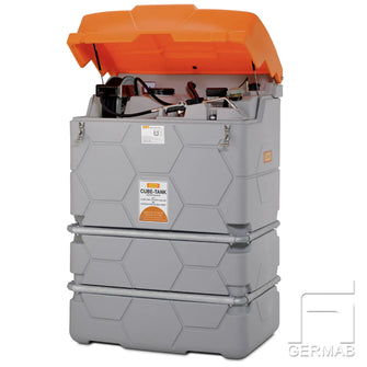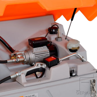 Färskoljetank för inomhusbruk. Utförande med 230V elektrisk pump. Konstruktion med dubbla väggar, omfattande integrerad spillbehållare med en uppsamlingsvolym på 110%,optiskt larm för spillbehållaren, tankkoppling, elektroniskt överfyllnadsskydd, ventilation, analog nivåmätare, komplett monterad, Integrerade gaffelfickor för lättare förflyttning. Tanken har med Z-40.21-510 godkännande