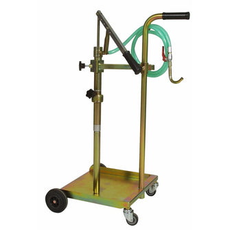 Komplett utrustning bestående av dubbelverkande pump med 2 m 1/2" utloppsslang med oljeventil. Kapacitet max ca 0,25 liter / dubbelslag. Max viskositet på olja är SAE 240 olja vid +20º C.Hjul Ø 2 st 120 mm och 2 st 55 mm. Pumpen kan ställas i 4 olika utväxlingsförhållanden 1:1,5. 1:2,2. 1:3,6. 1:6,9.