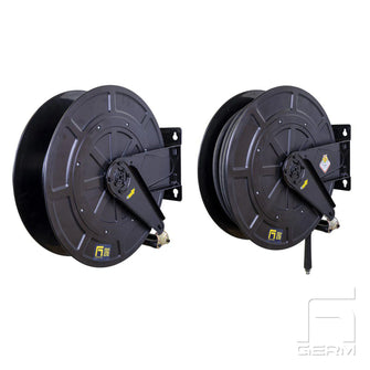 Slangvinda Black ABS Luft - Vatten är en premium vinda med mässing svivel som klarar 20bar. Vindan har rostfritt centrum/hub. Denna modell köpes färdig med lågtrycks svivel. Finns i två storlekar modell 430 och modell 530.