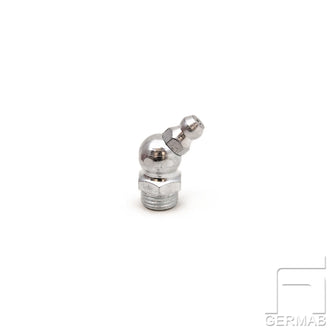 45° gradig smörjnippel enligt standard DIN 71412. Stålnippel i förzinkat stål, tillverkad i Tyskland. Håller mycket hög kvalité. Med konisk gänga.