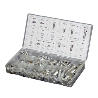 Sortimentlåda FD-6092 med bult, mutter och brickor i praktisk plastlåda om totalt 240 st.