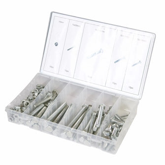 Sortimentlåda FD-30141 med M10 Bult och mutter i stål i praktisk plastlåda om totalt 100 st.