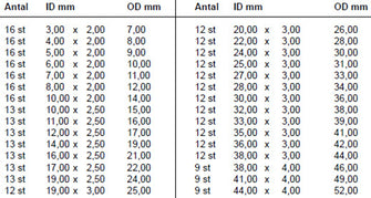 | Typ | O-ringar |