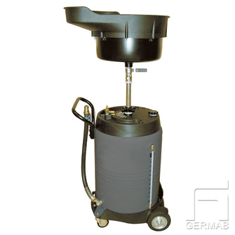 Mobil spilloljetömmare för alla typer av oljor. Kan med fördel användas under lyftar eller i smörjgrop. Unik stor skål, fack för verktyg mm. på tankens översida, som avsevärt förbättrar arbetsmiljö. Design och prestanda på högsta nivå. Får ej användas till explosiva eller korrosiva vätskor. Tömmes med pump E317-44. Ingår: 100L Tank, 20L Skål